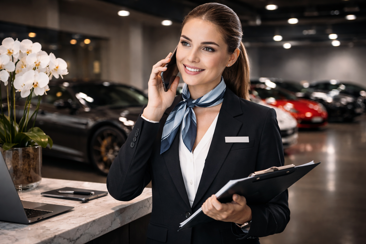 A professional driver can pick you up at the airport or train station andbring you directly to BLUSSERA to retrieve your vehicle.